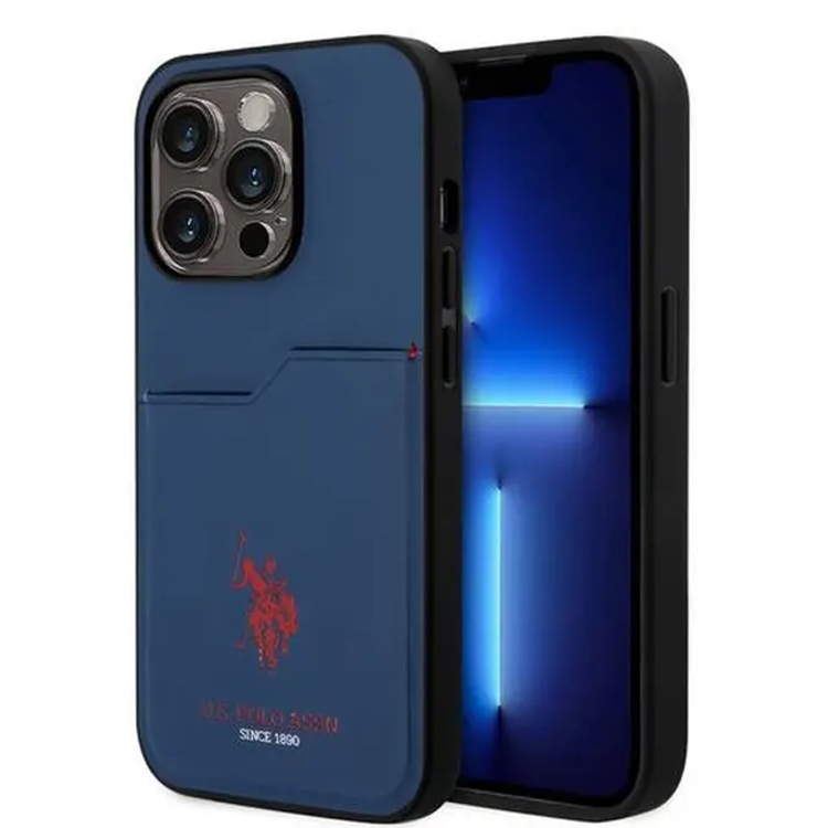 يو اس بولو اسن. كفر حماية صلب بفتحة بطاقة PU - القوات البحرية - iPhone 15 Pro