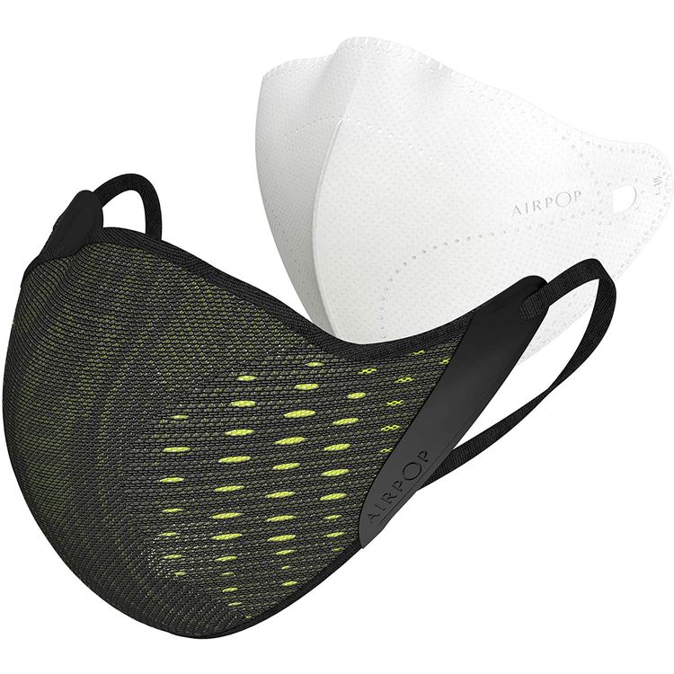 قناع وجه قابل لإعادة الاستخدام نشط من من ايربوب، أغطية وجه مرشح من 5 طبقات للرياضة ، تناسب محيطي ، قناع وجه قابل للطي قابل للتعديل ، أقنعة وجه للبالغين للحماية من الملوثات - اسود/ اصفر