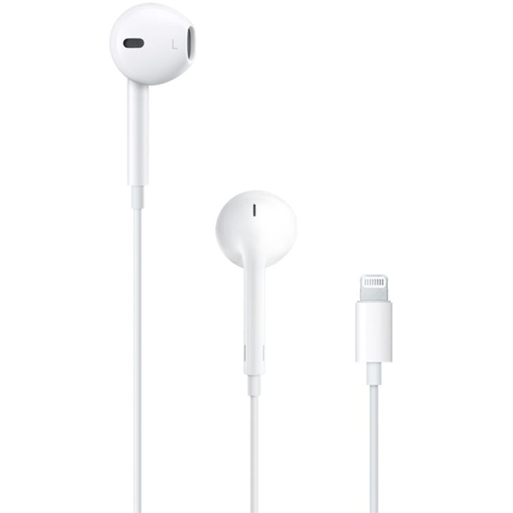 سماعات أبل إيربودز مع موصل Lightning، كابل مضاد للتشابك، توافق واسع، تصميم متين، جهاز تحكم مدمج، ملاءمة مريحة - أبيض