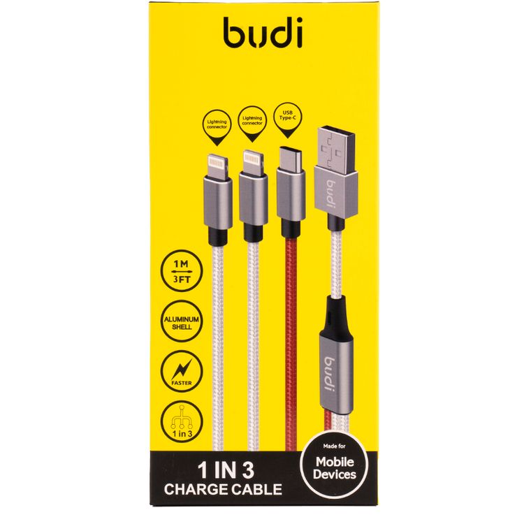 Budi DC203A2LLT-SLV 3 in 1 Lightning Cable / USB / Type-C - Silver