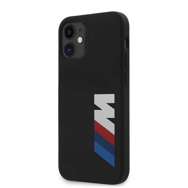 سي جي موبايل بي ام دبليو مجموعة M جراب من السيليكون السائل مطبوع عليه شعار كبير لهاتف ايفون 12 ميني (5.4 بوصة) مرخص رسميًا ومقاوم للصدمات ومقاوم للخدوش وسهل الوصول إلى جميع المنافذ والكاميرات والأزرار ومكبرات الصوت ، متوافق مع الشواحن اللاسلكية ، أسود