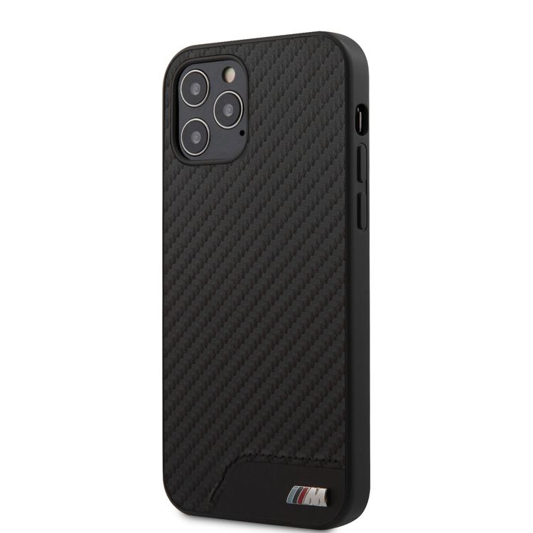 سي جي موبايل بي ام دبليو جراب صلب متباين من الكربون من مادة بولي اليوريثان بشعار M متوافق مع ايفون 12 بروماكس (6.7 بوصات) مقاوم للصدمات والخدوش ، سهل الوصول إلى جميع المنافذ (الكاميرات والأزرار ومكبرات الصوت) غطاء خلفي واقي مناسب مع شواحن لاسلكية مرخصة رسميًا - أسود