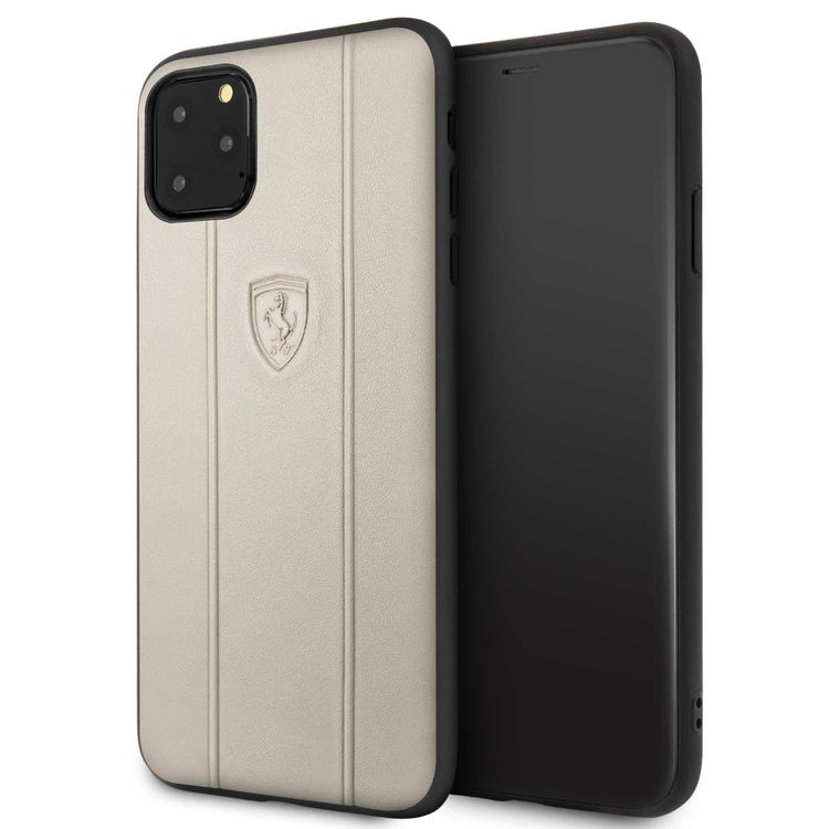 سي جي موبايل فيراري جراب هاتف Off Track جلد منقوش بخط الهاتف متوافق مع ايفون 11 برو ماكس (6.5 بوصة) جراب هاتف مناسب مع الشحن اللاسلكي مرخص رسميًا - بيج