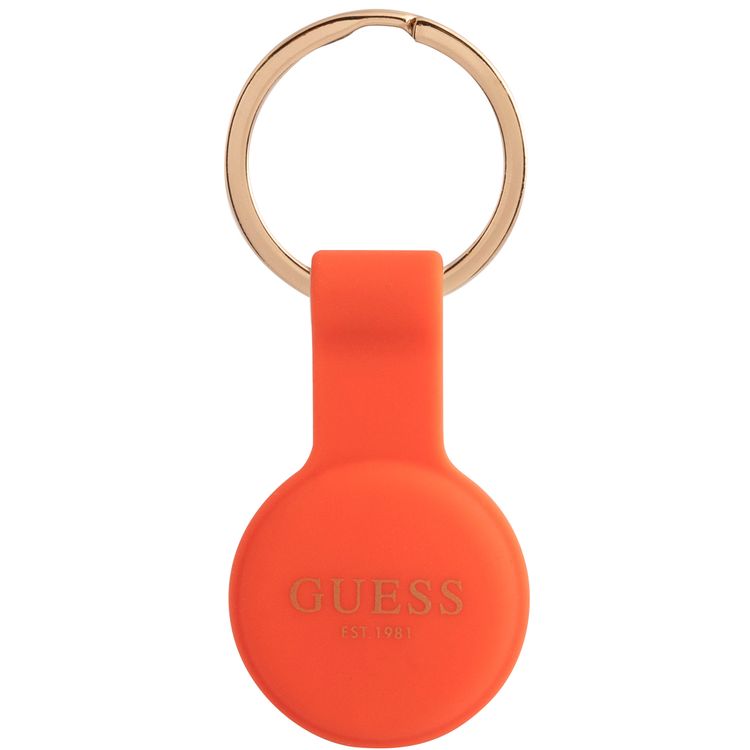 CG MOBILE Guess Silicone Classic Logo Case with Keychain Compatible for Airtag, Portable Protective Skin Cover, Anti-Lost Holder with Key Ring Suitable for AirTag Bluetooth Tracker, Easy to Attach Keys, Backpacks, Liner Bags Officially Licensed - White Orange
