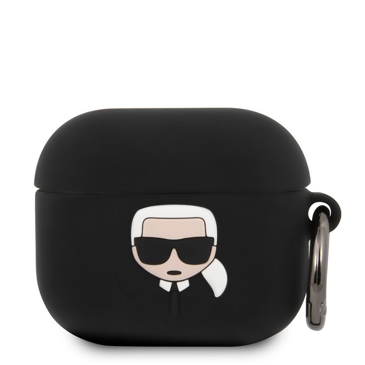 جراب سي جي موبايل من كارل لاغرفيلد من السيليكون برأس كارل مع حلقة متوافقة مع ابل ايربودز 3 ، مقاوم للخدش والسقوط ، غطاء سيليكون واقٍ ومقاوم للضياع لـ ابل ايربودز 3 مرخص رسميًا