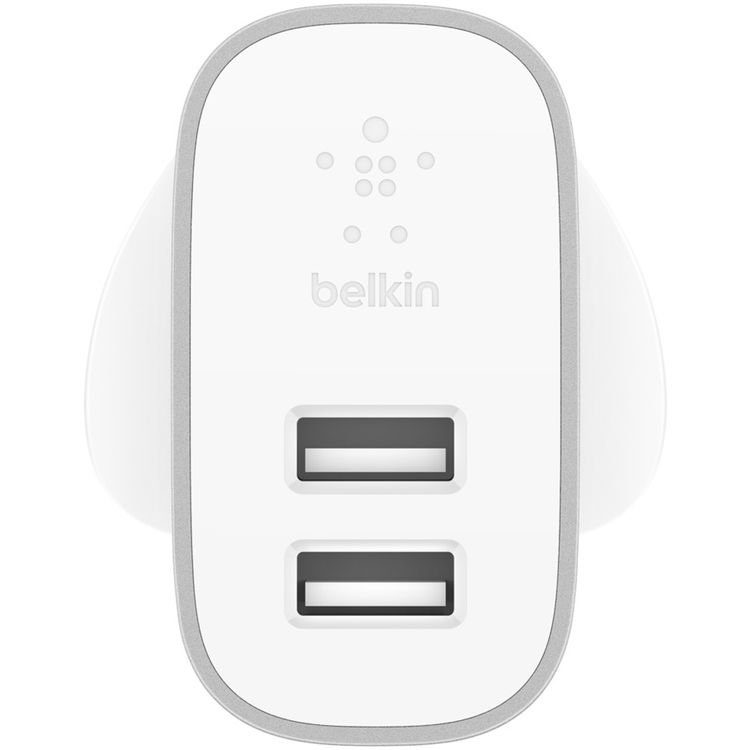 شاحن محول يو اس بي بلكين F7U049mySLV شاحن منزلي بمنفذين - فضي