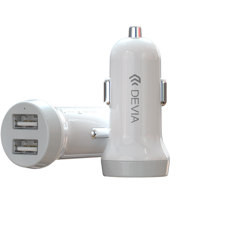 ديفيا شاحن سيارة سريع الشحن بمنفذين يو أس بي من السلسلة الذكية - أبيض