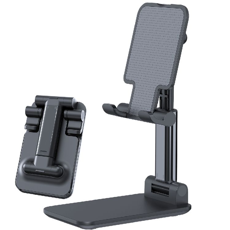 Devia Desktop Tablet Phone Stand, Adjustable, Lazy Stand, Anti-Slip Design, Safe & Secured, Portable Stand for Smartphones, Tablet, etc., Bedside, Office, Kitchen Table - Black