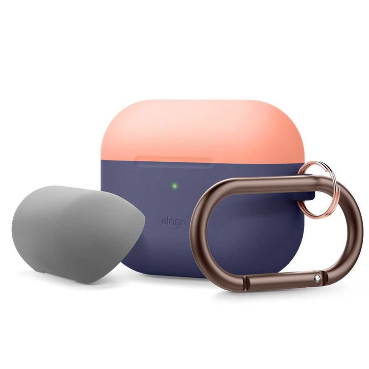 Elago Duo Hang Case for Apple Airpods Pro - Top-Peach / Medium Grey ، Bottom-Jean Indigo