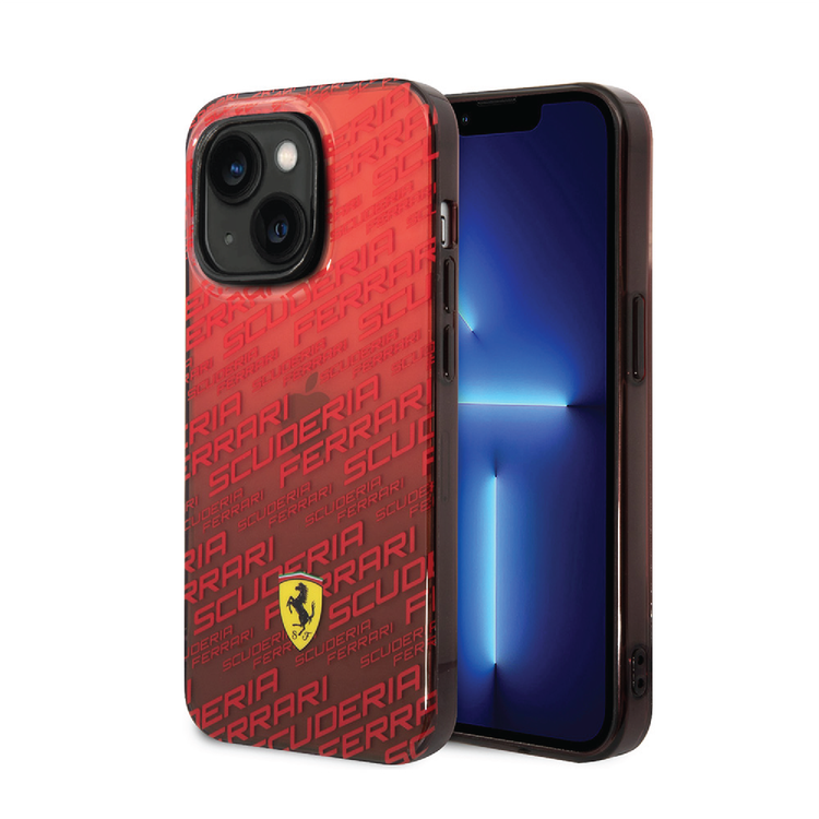 Ferrari Gradient PC/TPU Case with Allover Scuderia & Dyed Bumper iPhone 14 Compatibility - Red