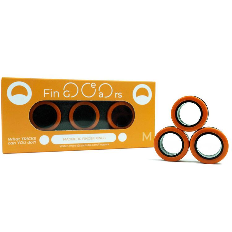 حلقات فينجيرز المغناطيسية للتسلية، عبوة من 3، تخفف الضغط والقلق، حلقة دوارة مغناطيسية حرة النمط للبالغين، مقاس متوسط - برتقالي/أسود