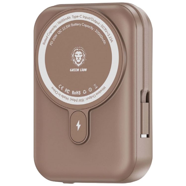 باور بانك جرين ليون 20000mAh موناكو MagSafe مع كابل Type-C مدمج، شاشة LCD، توصيل طاقة 20W، جذب مغناطيسي، تصميم مدمج - تيتانيوم الصحراء