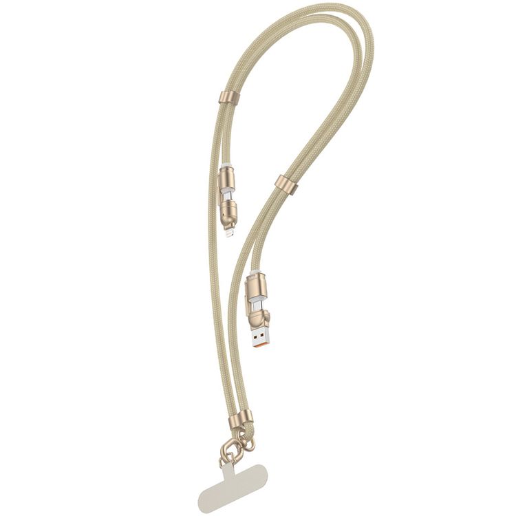 كابل جرين ليون 4 في 1 بتصميم مضفر مع حبل بطول 1.5 متر، قدرة شحن 240 واط، سرعة نقل بيانات 480 ميغابت في الثانية، من USB-A إلى USB-C، ومن USB-A إلى Lightning، ومن USB-C إلى USB-C، ومن USB-C إلى Lightning، مع عمر يصل إلى 10000 انحناء - باللون البيج.
