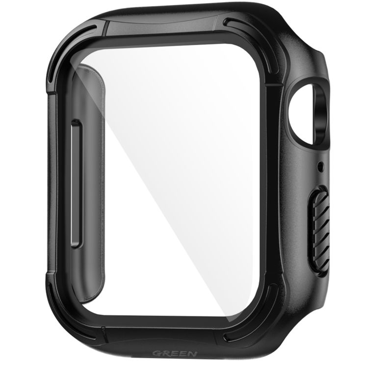 كفر حماية بحافة محافظة Guard Pro PC/TPU من Green Lion مع واقي زجاجي، سهولة الوصول إلى جميع المنافذ، حافظة بديلة مضادة للخدش متوافقة مع ساعة Apple 44 مم - أسود