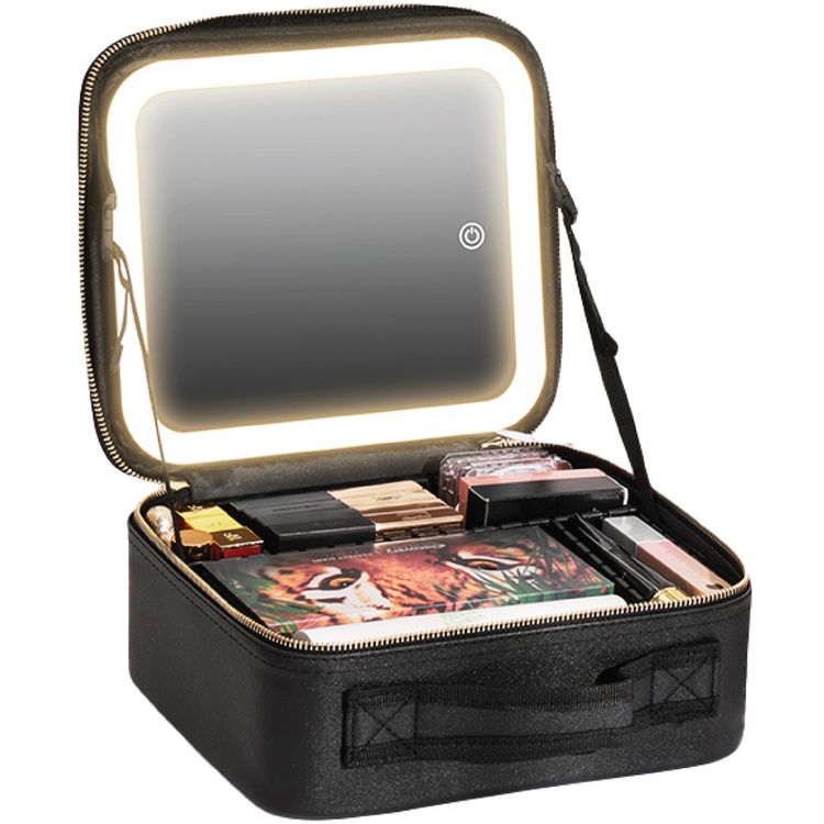 منظم مكياج Green Lion مع مرآة 4K، 72 خرزة إضاءة LED، وقت شحن 2-3 ساعات، وقت عمل 3-5 ساعات، جلد PU ومادة ABS، مقاوم للماء، سعة بطارية 2000 مللي أمبير، سطوع قابل للتعديل، قسم قابل للتعديل - أسود