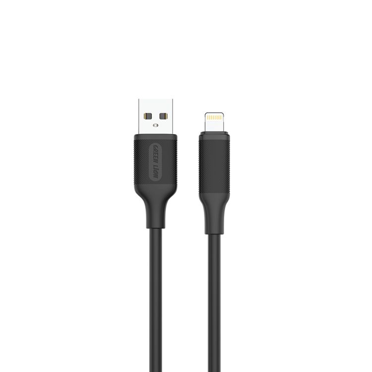كابل USB-A إلى Lightning PVC من Green Lion، عمر افتراضي 10000 انحناء، توافق واسع، شحن سريع، مضمون وآمن، طول الكابل 2 متر - أسود