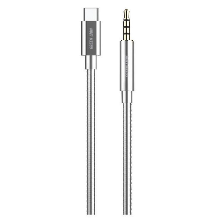 كابل Green Lion USB-C إلى Aux مع طلاء من الفولاذ المقاوم للصدأ بطول 90 سم - فضة