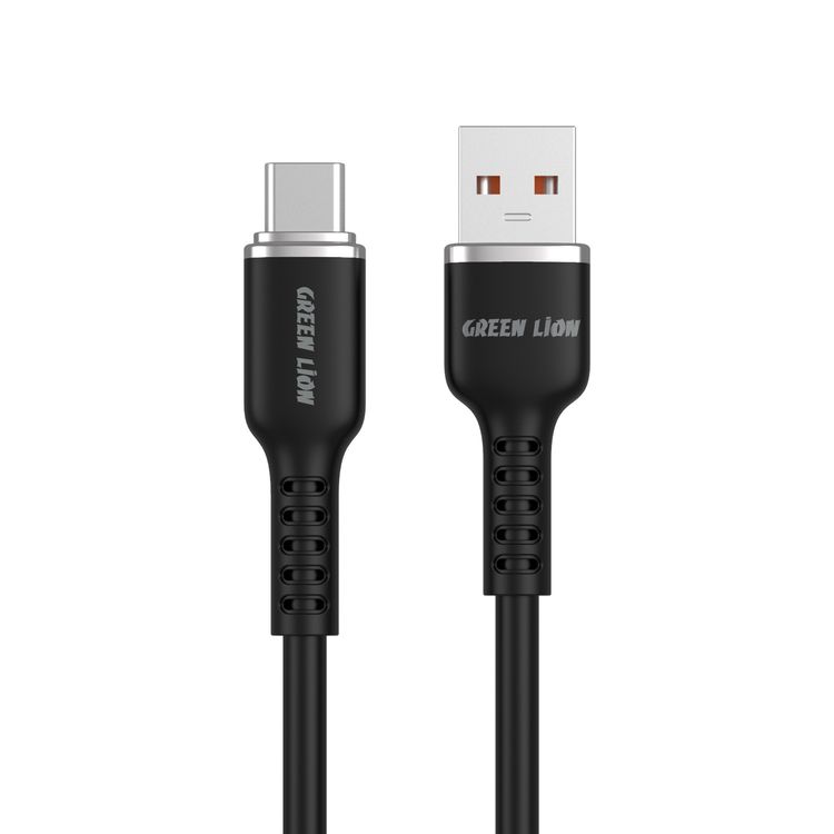 كابل سيليكون USB-A إلى USB-C بطول 1 متر من Green Lion، سرعة نقل 480 ميجابت في الثانية، 15 وات، شحن ومزامنة، عمر افتراضي يزيد عن 10000 ثنية، آمن ومضمون - أسود