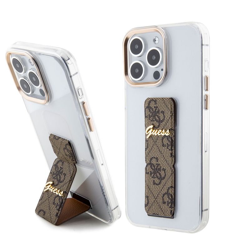 حافظة Guess Grip الشفافة مع شعار 4G Script لسلسلة iPhone 15 - بني - iPhone 15 Pro