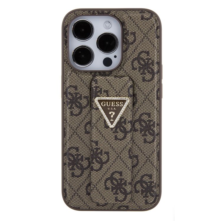 تخمين حقيبة جلدية بو Gripstand مع نمط 4G مثلث ستراس - بني - iPhone 15 Pro Max