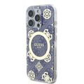 كفر حماية Magsafe IML 4G صلب بتصميم Guess مع زهرة الفاوانيا لهاتف iPhone 16 Pro، مصنوع من مادة عالية الجودة، خفيف الوزن، مريح وقبضة آمنة - أزرق