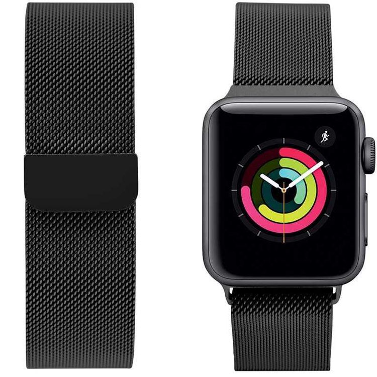 ايجارد من بورودو سوار معدني شبكي لساعة أبل ، سوار بديل ملائم ومريح ، أشرطة قابلة للتعديل متوافقة مع ساعة أبل 44 ملم / 42 ملم - أسود