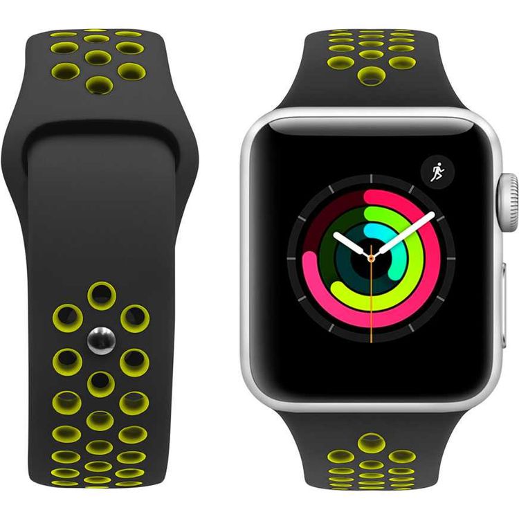 ايجارد من ساعة بورودو نايكي حزام لساعة ابل ، سوار بديل مريح ومناسب ، أشرطة قابلة للتعديل متوافقة مع ساعة ابل 44ميلي / 42ميلي - أسود / اخضر مصفر