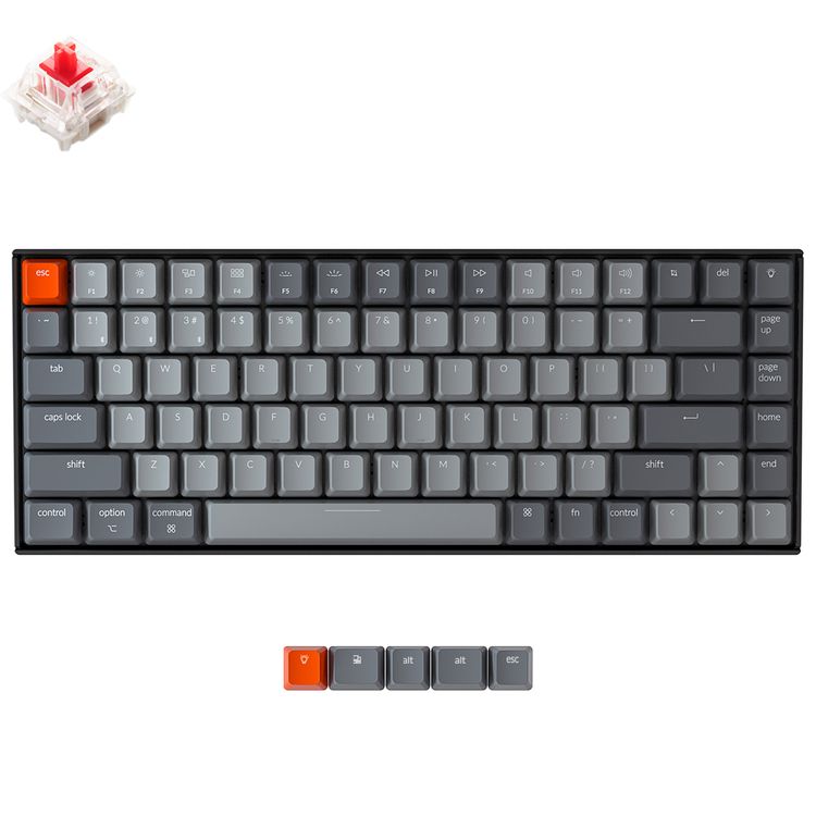 لوحة المفاتيح الميكانيكية اللاسلكية Keychron K2 84 Keys Hotswappable Gatetron G Pro مع مفتاح RGB وأحمر - أبيض أسود