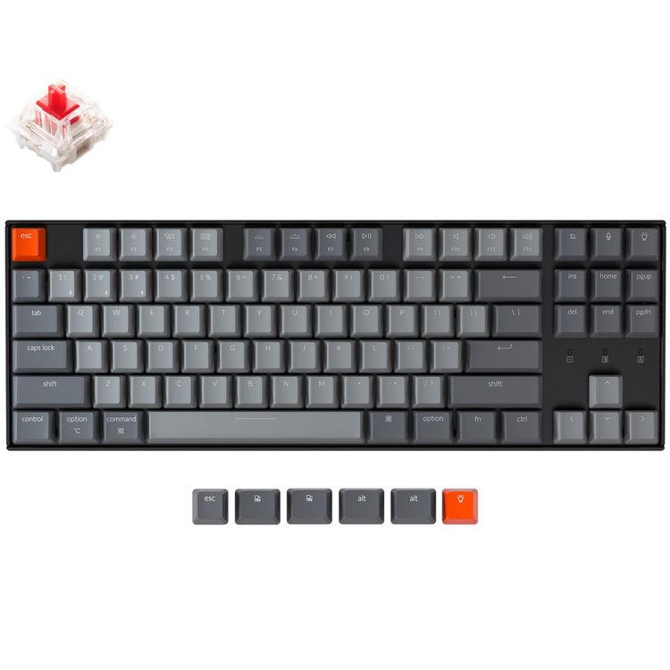 كيكرون لوحة مفاتيح ميكانيكية من Gateron مع مفتاح RGB ومفتاح أحمر / إضاءة خلفية LED بيضاء / USB سلكي ، لوحة مفاتيح بلوتوث للكمبيوتر - أسود