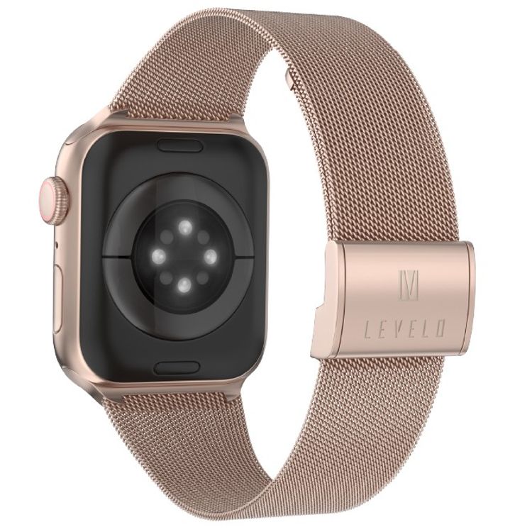 حزام ساعة ميلاني مزدوج من LEVELO متوافق مع ساعة آبل مقاس 42 مم/44 مم/45 مم، سوار بديل مصنوع من الفولاذ المقاوم للصدأ، سوار ذو حلقة مغناطيسية قابلة للتعديل لسلسلة الساعات 7/SE/6/5 - ذهبي عتيق.