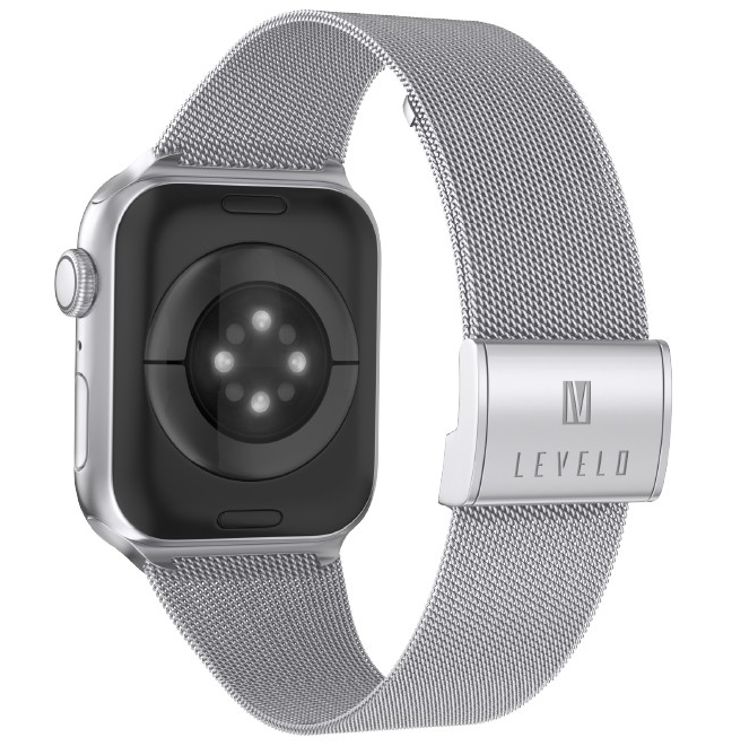 حزام ساعة LEVELO Double Milanese متوافق مع ساعة آبل 42مم/44مم/45مم، سوار بديل من الفولاذ المقاوم للصدأ، حزام حلقة مغناطيسي قابل للتعديل لسلسلة الساعات 7/SE/6/5 - فضي