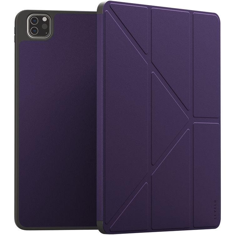 كفر ليفيليو إليجانت هايبرد الجلدي لجهاز آيباد 10.2، مصنوع من الجلد الفاخر، مقاوم للصدمات، حافظ ممتص للصدمات، حامل أفقي لوضعية العرض، وضع مسطح للكتابة والعمل - بنفسجي