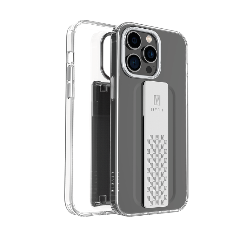 غطاء Levelo Graphia IMD شفاف مع قبضة إضافية لهاتف iPhone 14 Pro Max - فضي