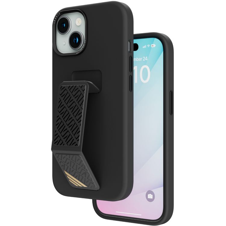 Levelo Morphix Silicone Case With Leather Grip For iPhone 15 Plus - Black