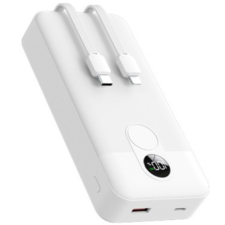 بنك الطاقة بورودو بسعة 20000 مللي أمبير مع كابل مدمج من نوع C وكابل لايتنينج، توصيل طاقة بقوة 22.5 واط، شحن متزامن، شحن من 0% إلى 60% في 35 دقيقة، عرض رقمي - أبيض
