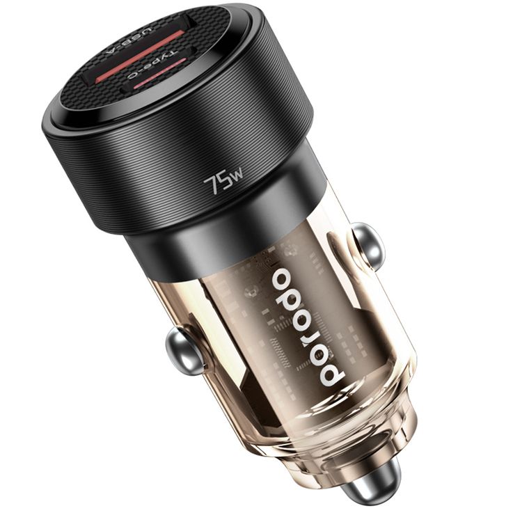 بورودو شاحن سيارة شفاف ثنائي المنفذ 75 واط PD 45 واط QC 30 واط - أسود