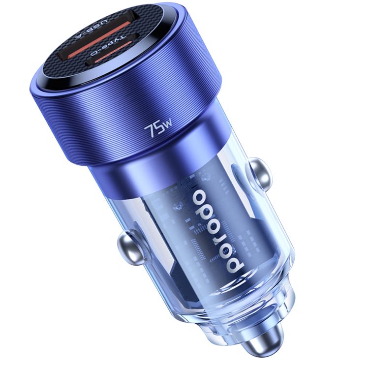 بورودو شاحن سيارة شفاف ثنائي المنفذ 75 واط PD 45 واط QC 30 واط - أزرق