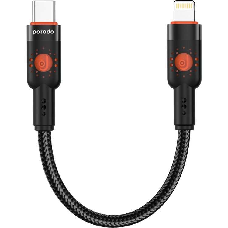 كابل مضفر من سبائك الألومنيوم من بورودو من النوع C إلى Lightning بطول 25 سم، PD 30 وات، سرعة نقل 480 ميجابت في الثانية، عمر افتراضي يزيد عن 15000 ثنية، خالٍ من التشابك - أسود