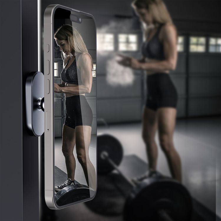 قاعدة تثبيت MagSafe من سبائك الألومنيوم من Porodo وقاعدة معدنية ودوران سلس 360 درجة، 17 مغناطيسًا مدمجًا، نسيج ألياف الكربون الفاخر، 4 مغناطيسات تثبيت خلفية N54 - رمادي