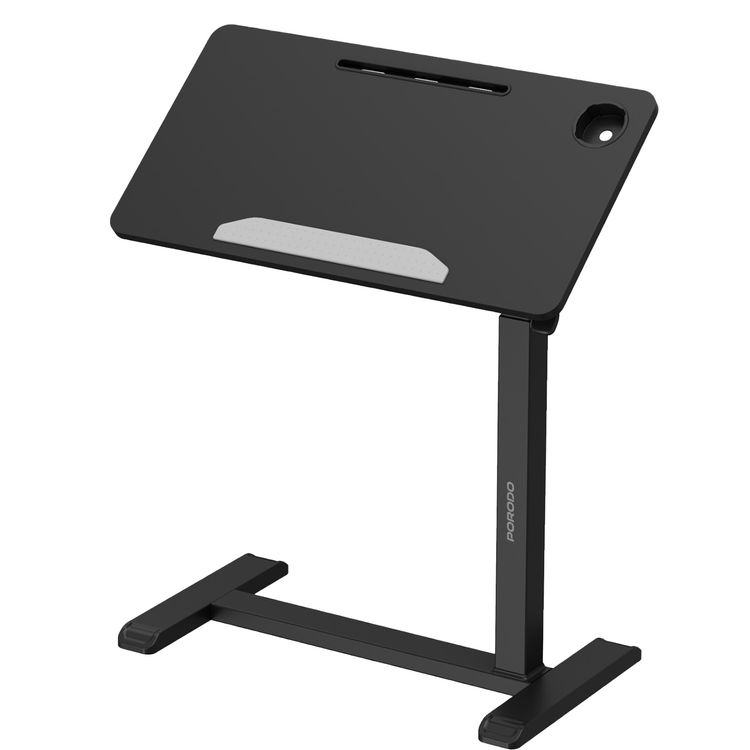 طاولة بجانب السرير ومكتب قائم للأجهزة اللوحية واللابتوب مع حامل كوب، ارتفاع قابل للتعديل، حمولة قصوى 10 كجم، تصميم عجلات مخفية، زاوية ميل تصل إلى 90 درجة - أسود