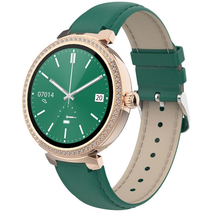 ساعة ذكية Porodo Belle Lady بمينا باللون الذهبي الوردي، وبلوتوث V5.4، وسبائك الزنك + مادة ABS، وشاشة مقاس 1.19 بوصة، وشاشة AMOLED، ومتتبع النشاط - أخضر