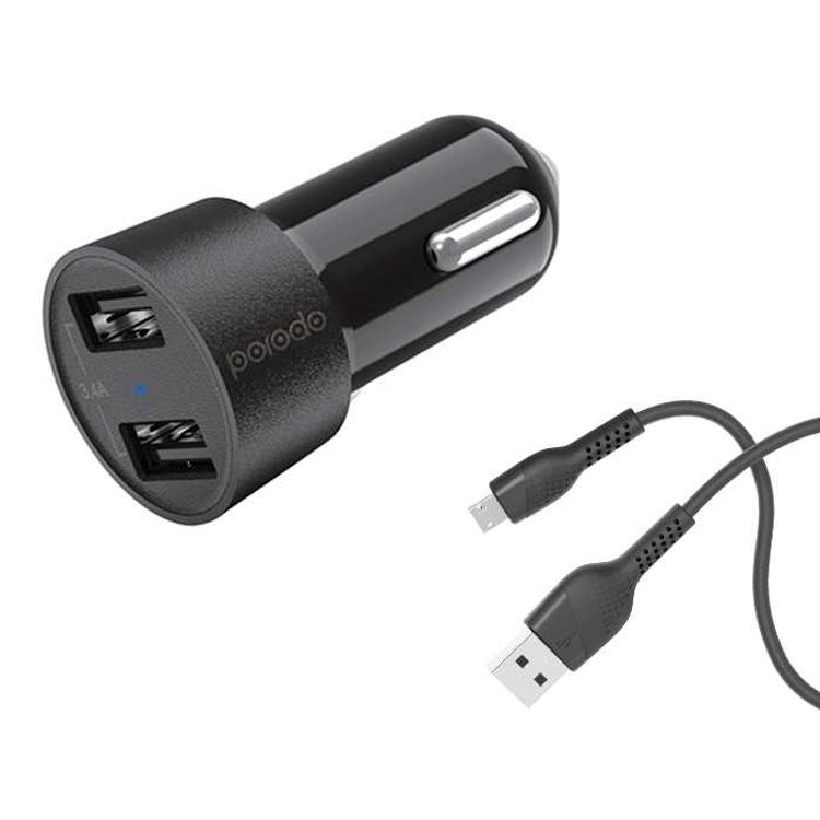 شاحن سيارة بوردو مزدوج يو اس بي 3.4امبير مع كابل ميكرو يو اس بي 4 قدم. متوافق مع الأجهزة الصغيرة ، محول السيارة المتوافق العالمي آمن وموثوق - أسود