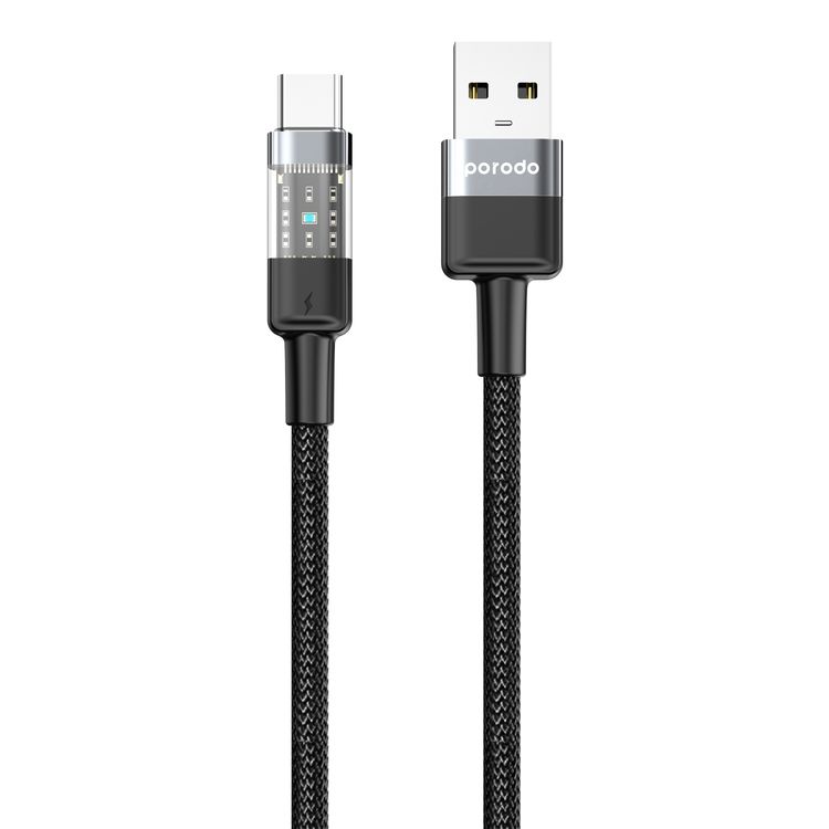 كابل بورودو مضفر من نوع USB-C إلى USB-A مع قدرة توصيل طاقة 3A، يتحمل أكثر من 15000 انحناء، مقاوم للتشابك، مكونات عالية الجودة، بطول 1.2 متر - أسود
