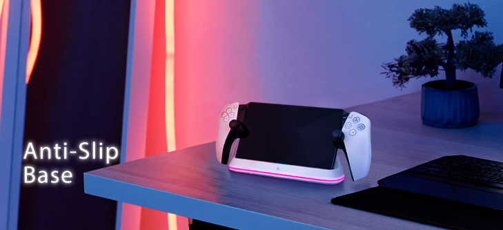 قاعدة شحن Porodo Gaming PlayStation Portal مع قاعدة مضادة للانزلاق، حماية مدمجة، مادة ABS، إضاءة RGB - أبيض