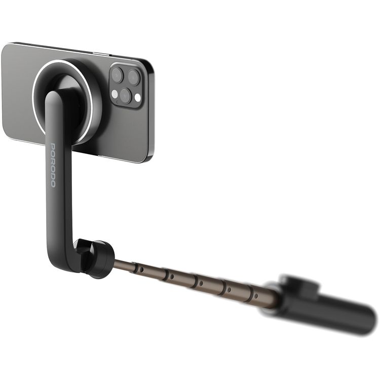 حامل ثلاثي القوائم المغناطيسي من Porodo Magsafe Selfie، قابل للتمدد 64.5 سم، بلوتوث 5.0، مصراع لاسلكي، 16 حلقة مغناطيسية، وزن 2 كجم، تصوير من أعلى، خفيف الوزن وصغير - أسود