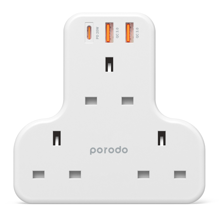 Porodo مقبس حائط متعدد المنافذ - أبيض