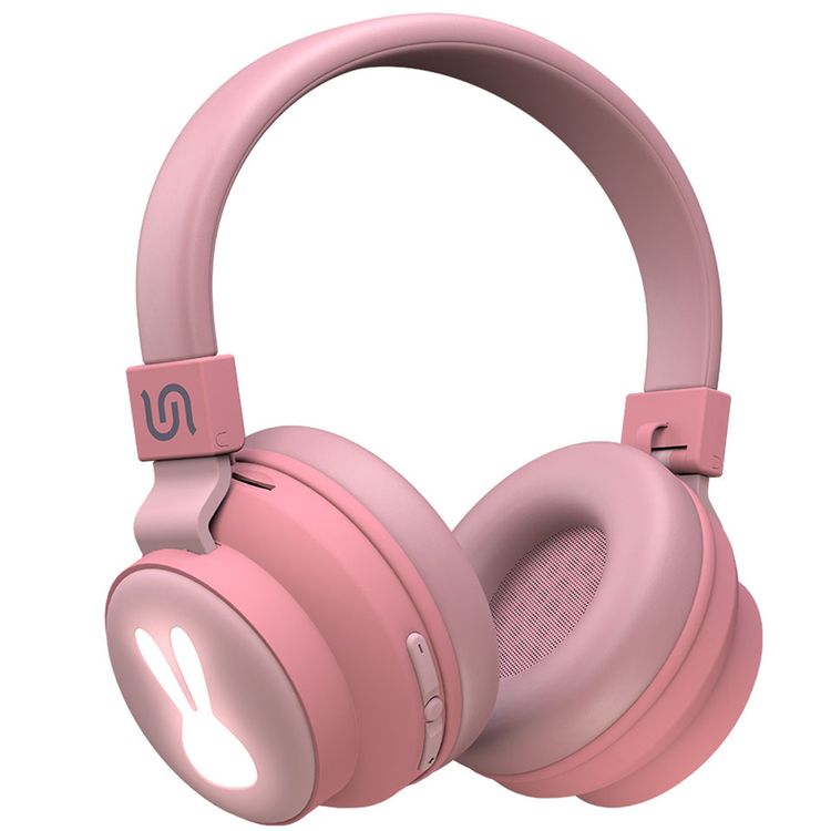 سماعة رأس لاسلكية من بورودو ساوندتيك كيدز فوق الأذن مزودة بميكروفون فائق وأضواء LED، صوت واضح، وقت تشغيل لمدة 30 ساعة، سماعة رأس بلوتوث 5.0 (أرنب) - وردي