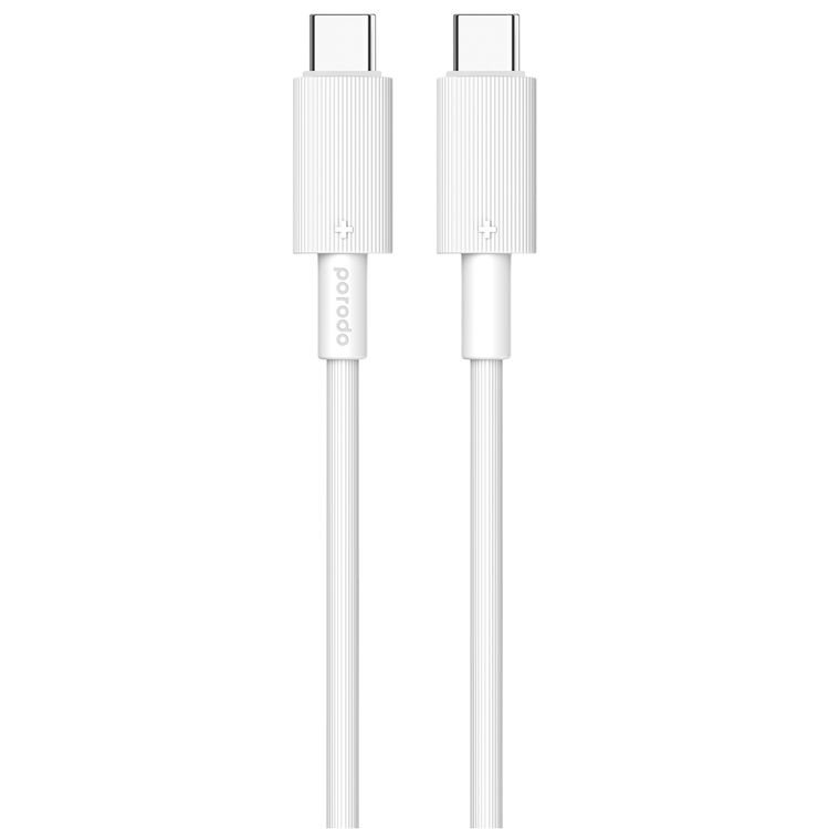 كابل بورودو USB-C إلى USB-C PVC، سرعة نقل 480 ميجابت في الثانية، توصيل طاقة 60 وات، عمر افتراضي يزيد عن 15000 ثنية، طول الكابل 1.2 متر، خالٍ من التشابك - أبيض