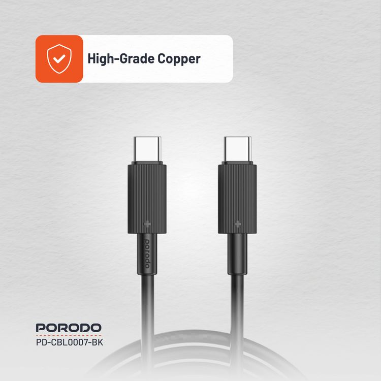كابل بورودو من النوع C إلى C PVC بطول 3 متر، سرعة نقل 480 ميجابت في الثانية، PD 60 وات، عمر افتراضي يزيد عن 15000 ثنية، خالٍ من التشابك - أسود