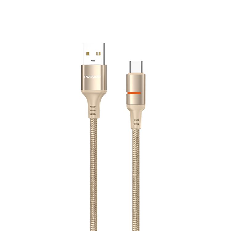 كابل ضوء LED من Porodo USB-A إلى USB-C مع تيار 2.4A، سرعة نقل 480 ميجابت في الثانية، طول الكابل 1.2 متر، شحن سريع ونقل بيانات، سلك مضفر - ذهبي
